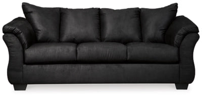 Talk about fine lines and great curves. That’s the beauty of this standout living room group—made to suit your appreciation for clean, contemporary style. A striking flared frame, comfy pillow top armrests and an ultra-soft upholstery that holds up to everyday living complete this fashion statement.